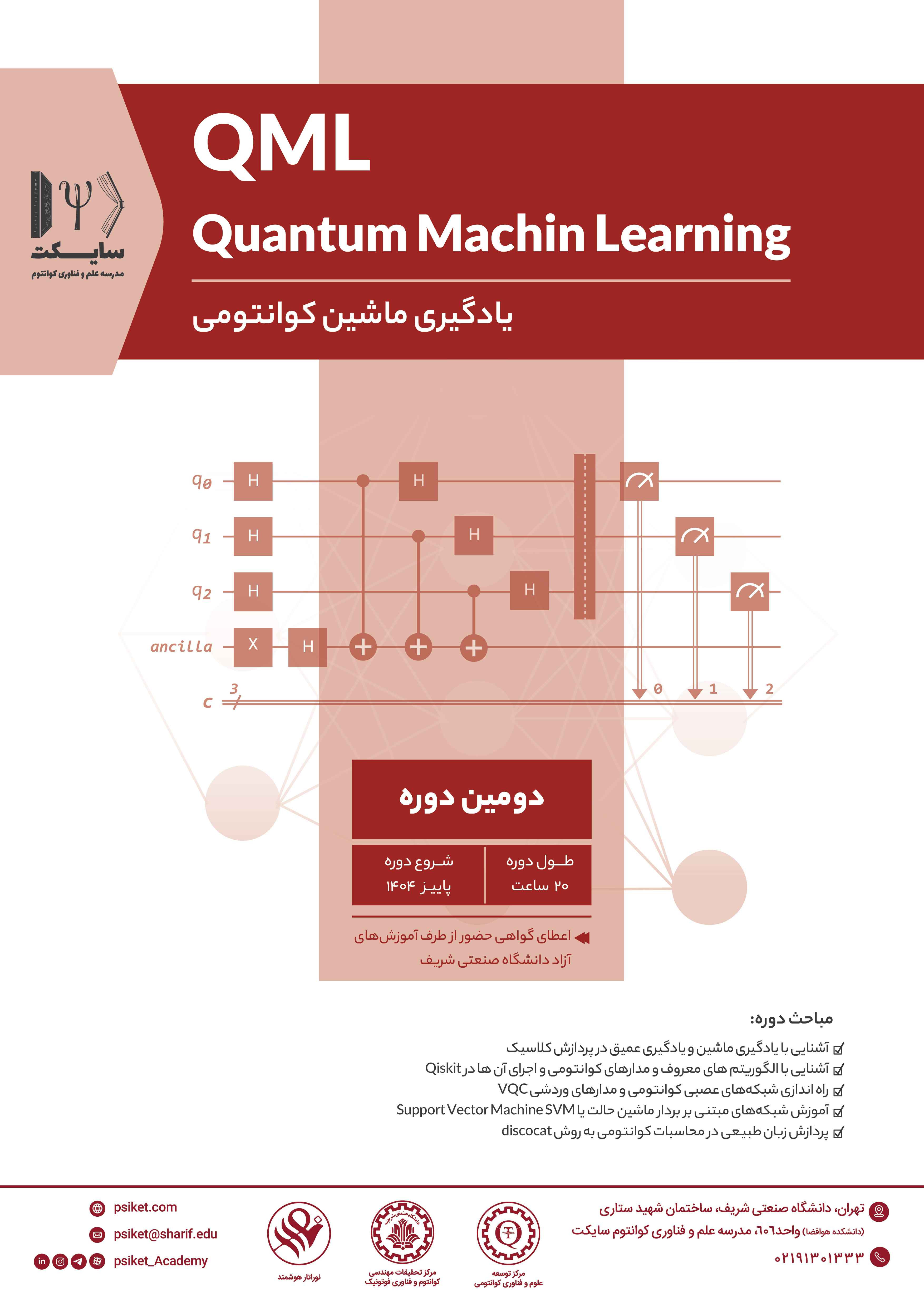 دوره "یادگیری ماشین کوانتومی" به بررسی ترکیب دو حوزه پیشرو در علم و فناوری میپردازد: یادگیری ماشین و محاسبات کوانتومی. این دوره با تمرکز بر مدلهای ترکیبی کوانتومی–کلاسیک، به بررسی روشهایی میپردازد که در آنها از ویژگیهای منحصربهفرد سیستمهای کوانتومی – مانند برهمنهی، درهمتنیدگی و تداخل – برای افزایش کارایی الگوریتمهای یادگیری ماشین استفاده میشود.
